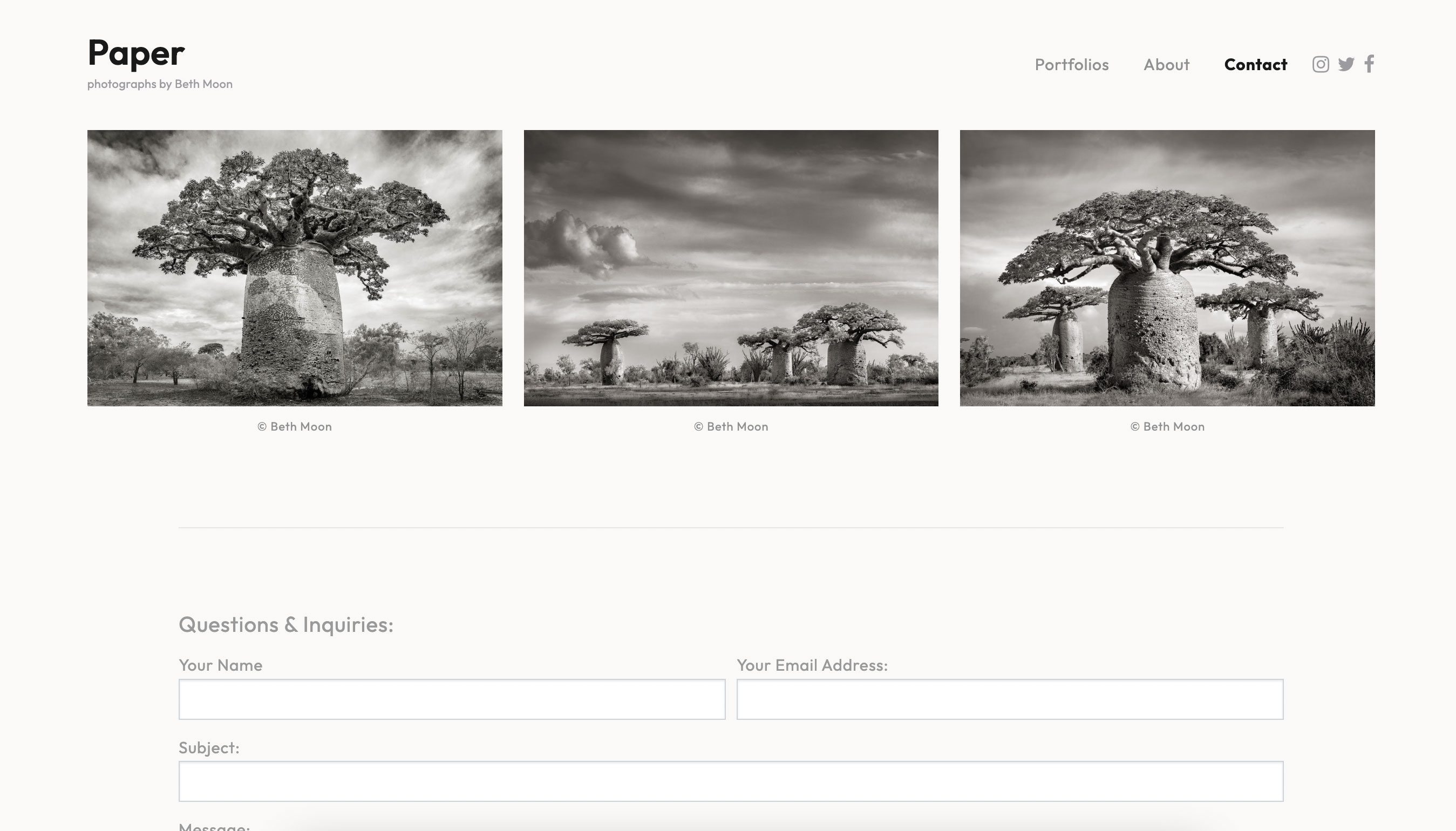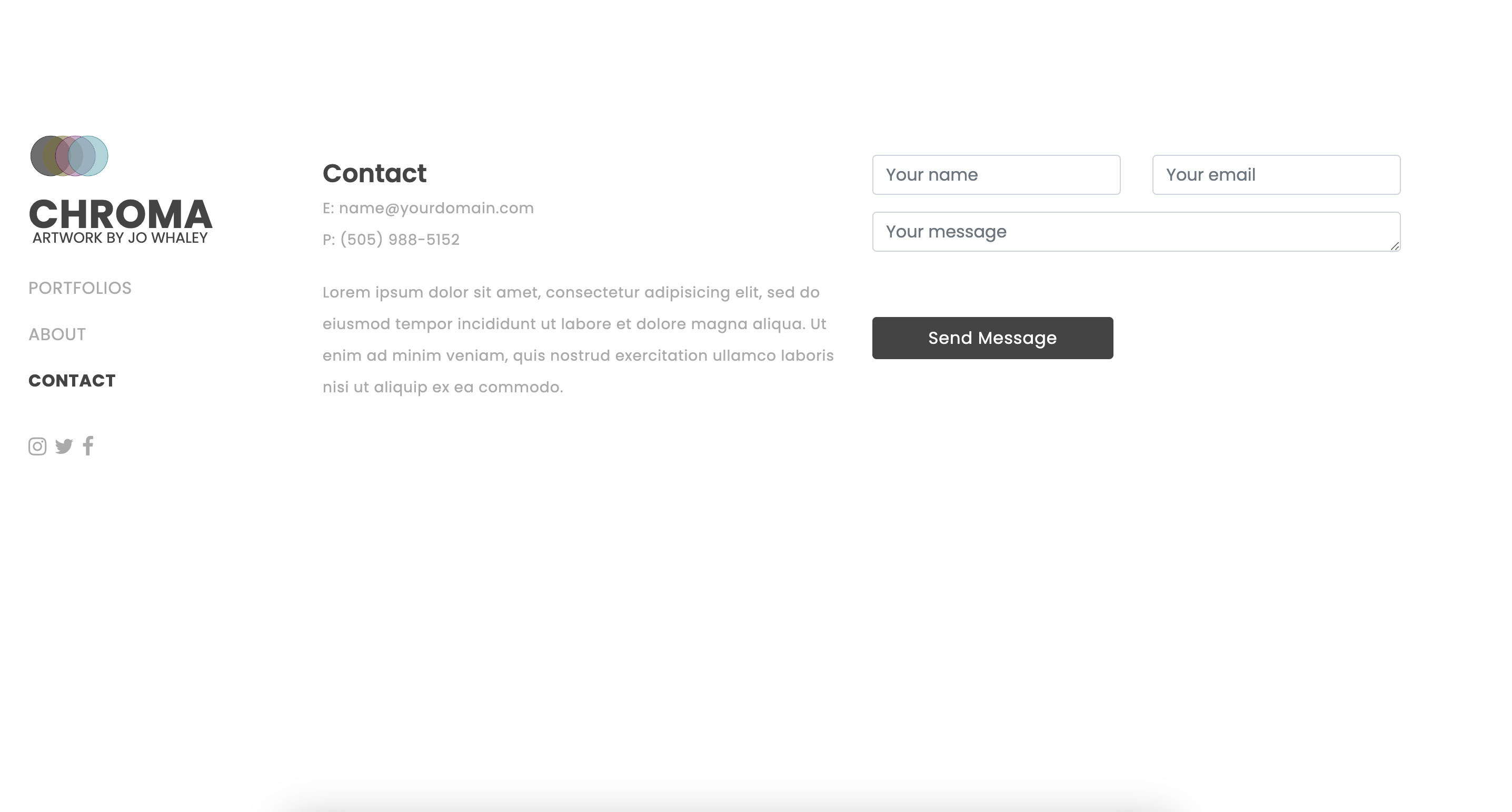 Create as many pages with different page types (portfolios, text, images, combinations) as you would like.
